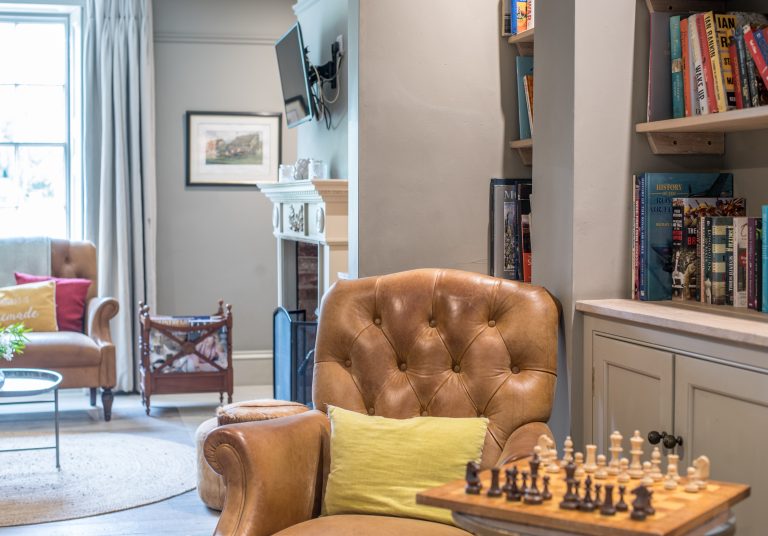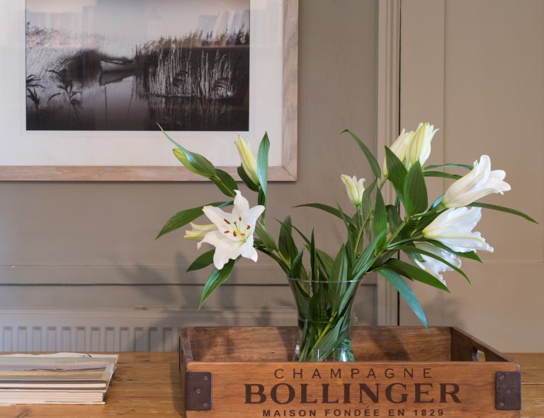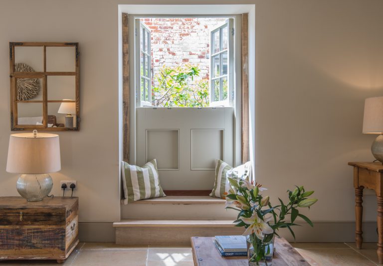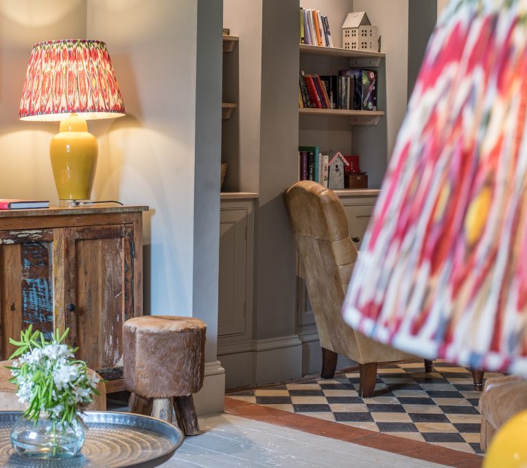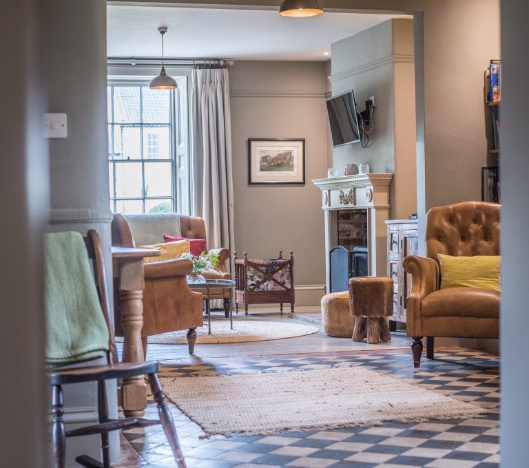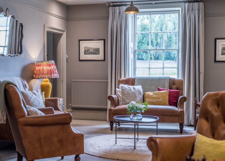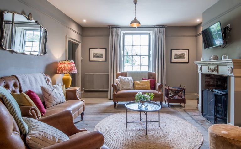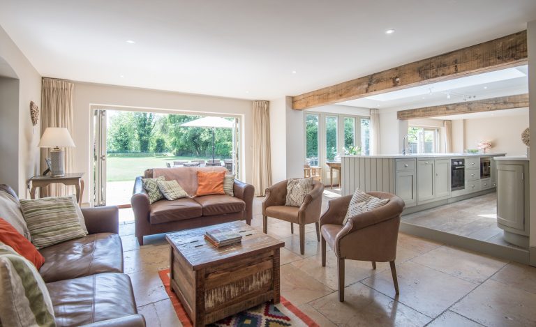 • Large open plan sitting area with an open fire at one end and a large wood burning stove at the other