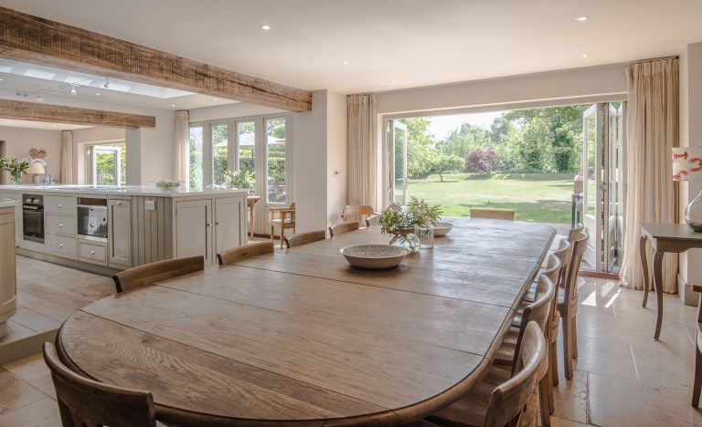 Two sets of bi-folding doors which open out onto a large south facing terrace.