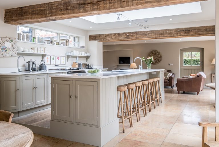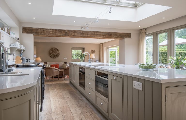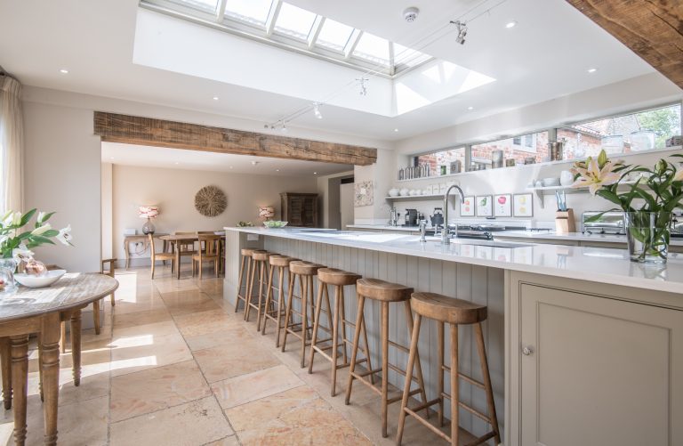 The hub of the downstairs living space is this huge open plan kitchen with a large central island unit set underneath a stunning roof lantern.